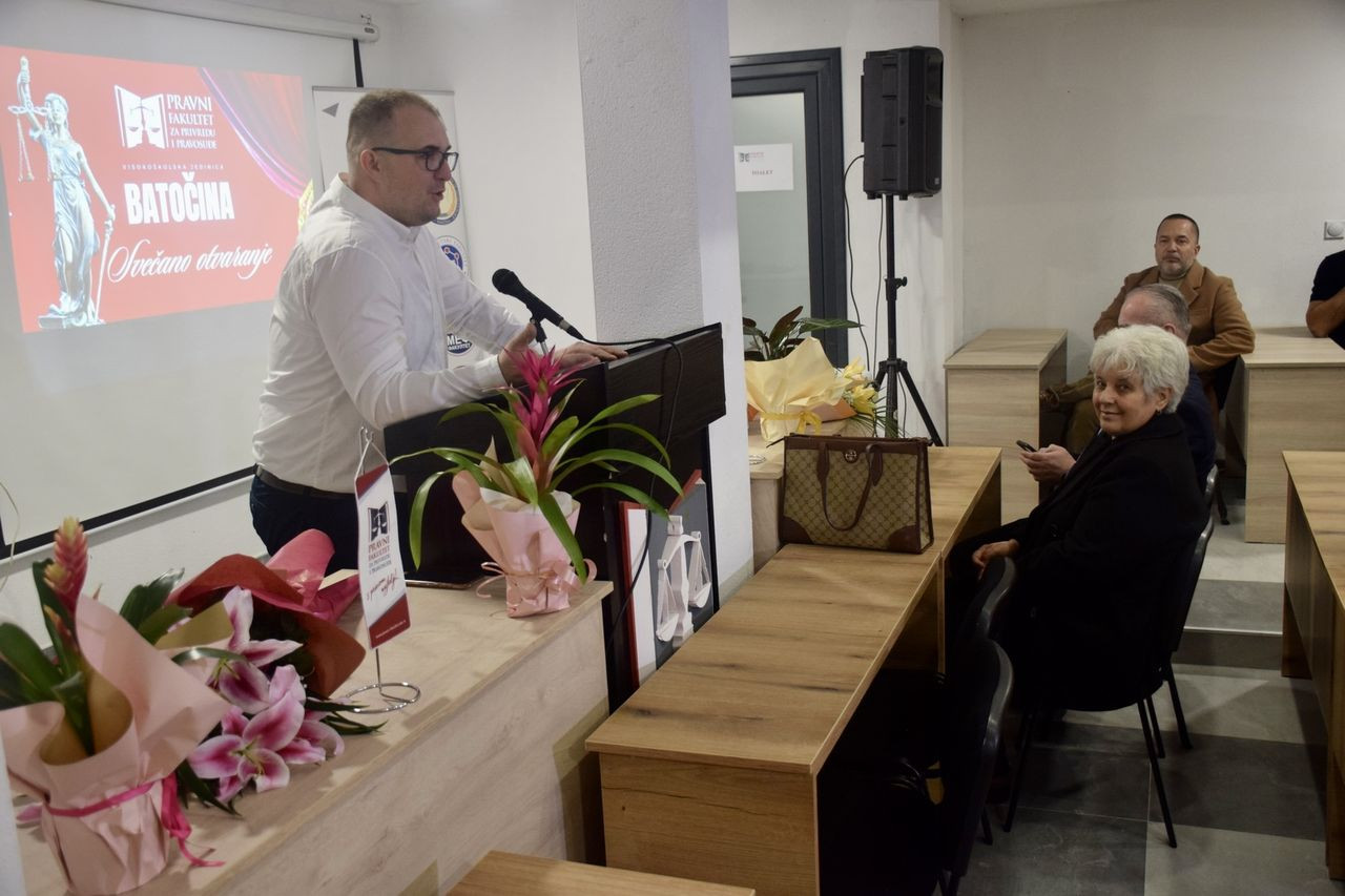 Prof. dr Marko Stanković, rukovodilac VŠJ u Batočini obratio je prisutnima i predstavio podatke o impozantnoj zgradi u kojoj će se obrazovati budući uspešni pravnici. „ U blizu 1000m2 nalaze se amfiteatar, učionice, informatički kabinet, biblioteka sa fondom koji broji preko 3000 naslova, kao i kancelarije za zaposlene. Dakle, objekat je u potpunosti namenski napravljen za visokoškolsku instituciju.“ – rekao je prof. dr Marko Stanković. Nakon toga, organizovan je obilazak prostorija, kao i koktel za sve prisutne.
