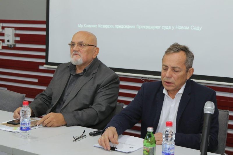The President of the Misdemeanor Court in Novi Sad, Mr. Kozarski, spoke about the regulations that this Court applies in its work, gave a description of competencies, obligations, scope of authority of the Misdemeanor Court etc. The guest lecturer also presented to the audience the organizational structure of the Misdemeanor Court and addressed the principles of transparency, publicity and accountability the need to be obeyed in its work. The main and most important law applicable in the Misdemeanor Court is the Law on Misdemeanors. The judges typically apply about 270 regulations in their work, which are essential for the conduct of misdemeanor proceedings on a daily basis. The President of the Misdemeanor Court placed a particular emphasis on the following laws: The Law on Tax Procedure and Tax Administration, the Law on Road Traffic Safety, the Law on Public Peace and Order, the Law on Arms and Ammunition, etc. "There are numerous advantages of the mentioned laws and regulations, and the citizens have felt it themselves. However, the Constitutional Court has ruled that unpaid fines shall lead to more stringent consequences for citizens, such as the inability to register their vehicle or, if the courts cannot collect the receivables, the sentence will eventually be converted to imprisonment." - said Mr. Kamenko Kozarski.