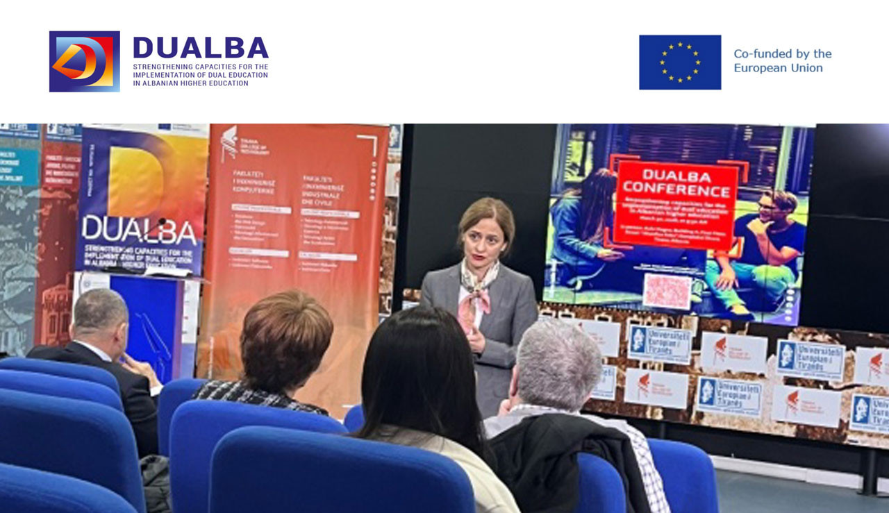 U okviru projekta „Jačanje kapaciteta za implementaciju dualnog obrazovanja u visokom obrazovanju Albanije (DUALBA)“, od 30. do 31. marta 2026. godine održana je konferencija u okviru Radnog paketa 3 - Generički model dualnog visokog obrazovanja (DUALBA model).